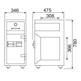 ●ロック方式:ダイヤルタイプ ●外寸法:H780×W346×D475mm ●内寸法:H366×W226×D308mm ●重量:90kg ●内容量:25L ●投入口:H90×W190×D100mm ●性能:JIS1時間耐火試験合格品 ●24時間営業のお店やオフィスに欠かせない、時間外に利用できる安心で便利な投入庫。 一般紙用 JIS1時間耐火試験合格 ※JISに基づき、大火災時の消火活動が困難を想定し耐火試験の基準を設けて造られています。 【耐火試験方法】 1.金庫を炉内に入れ、JISが定める標準温度曲線に従って規定時間加熱していく。 2.加熱終了後は、炉内で自然冷却する。 【合格基準】 一般紙用 ・庫内最高温度177℃以内 ・庫内の壁全面に貼った新聞紙が判読可能な事。