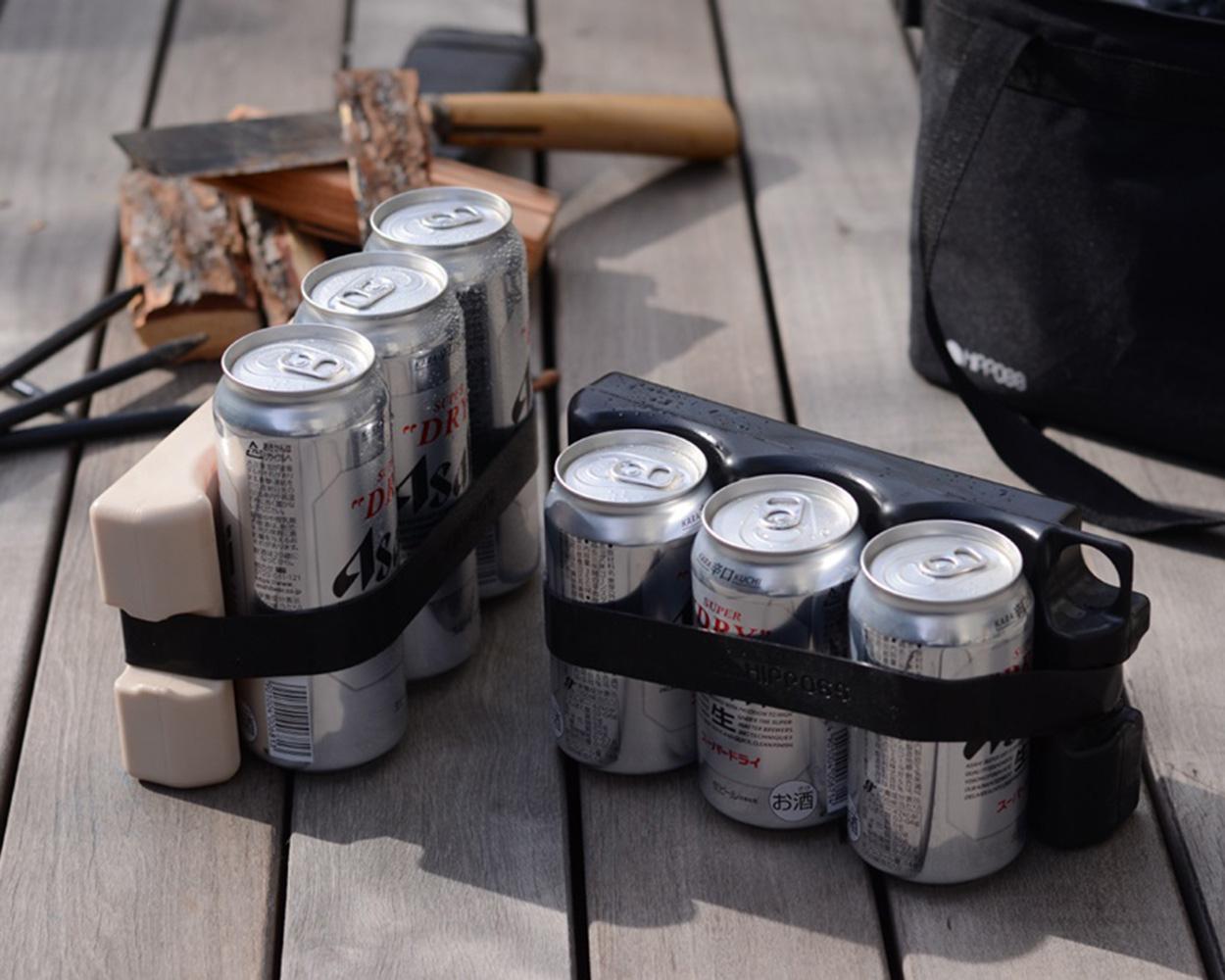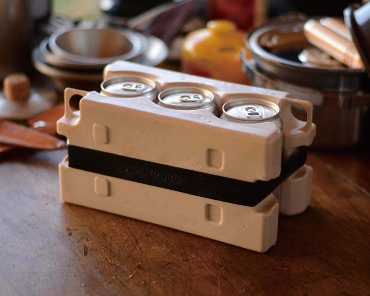 冷凍庫で凍らせることで -10℃を 5 時間キープ、缶やペットボトルを付属のシリコーンバンドで固定することで保冷剤と常に接した状態を維持できます。