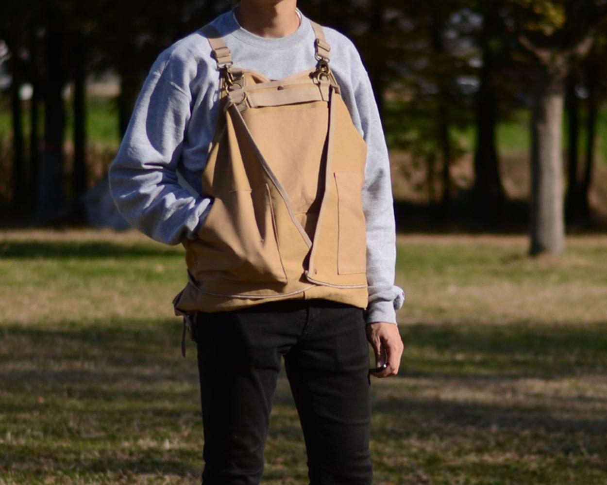 エプロン、ベスト、バッグと使える 難燃生地のエプロンバッグ