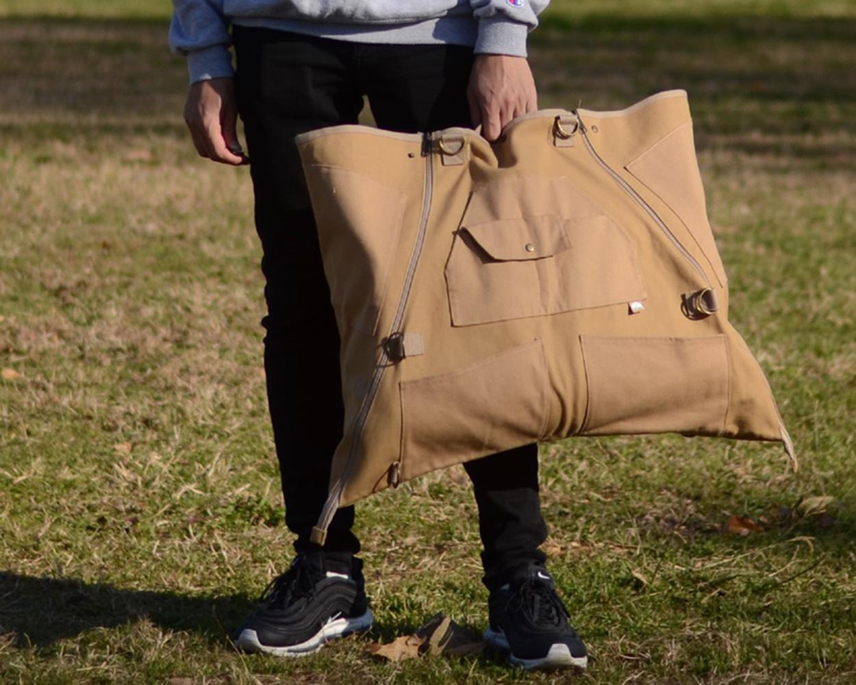 サイドのファスナーを開閉することでエプロンがバッグに早変わり。