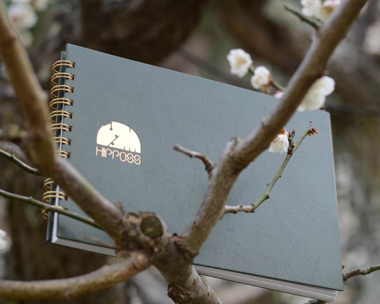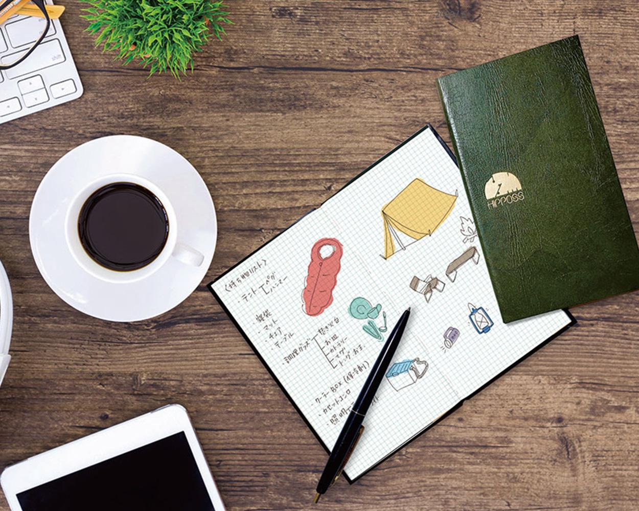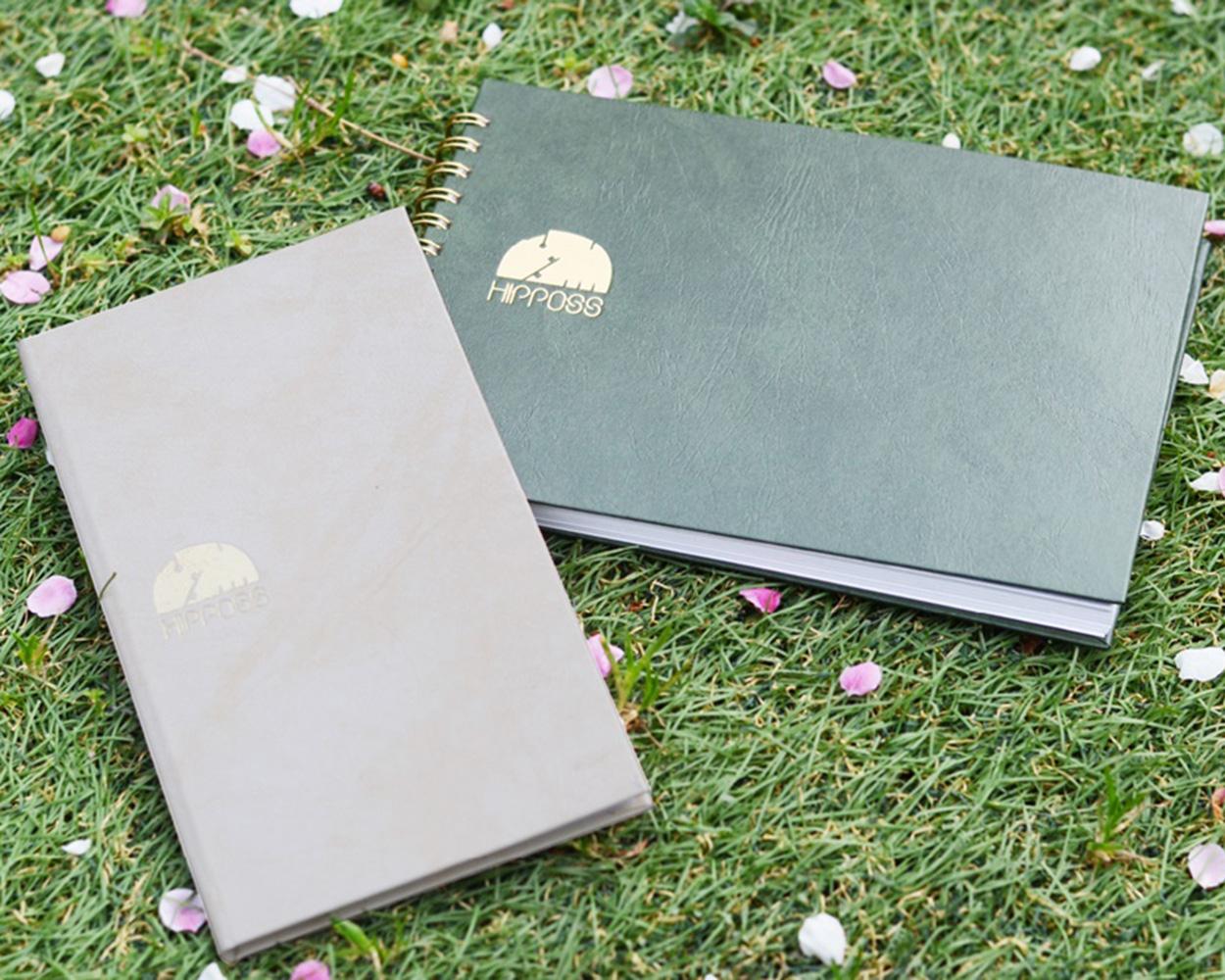 撥水性のハードカバー表紙、持ち運びに便利なスリムな形状のノートに仕上げました。
