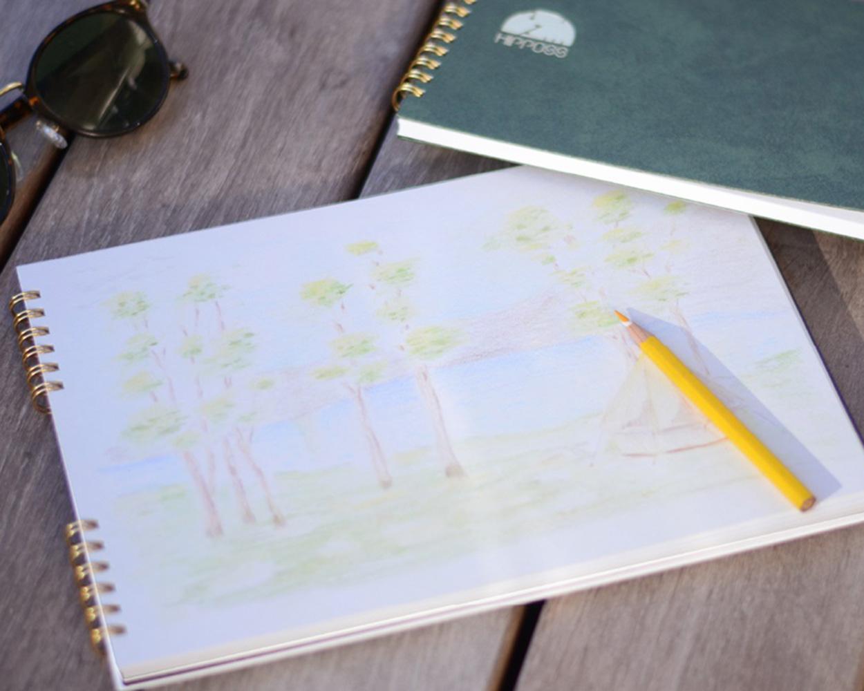屋外でも気軽に絵が描けるスケッチブックアウトドアシーンで気軽に絵が描けて、