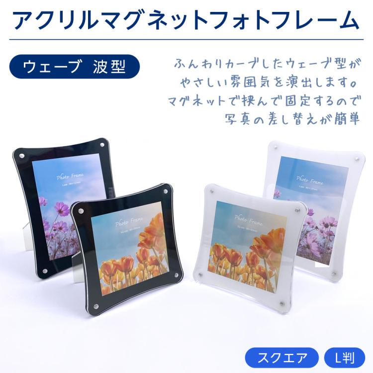 アクリル板4?厚と4?厚の2枚合わせのフォトフレーム。収納写真サイズは89×89mm、スクエア判。 透明度の高いアクリルを採用。円型にカットしたアクリルに写真をセットできますので、よりおしゃれに写真を飾ることができます。 アクリル板の四隅にセットされたマグネットで挟んで固定するため、写真の差し替えが簡単です。スタンド式で、フォトフレームの縦置き、横置きが可能です。 ●本体寸法:137×137×10mm、重量:210g ●仕様:アクリル板4?厚と4?厚の2枚合わせ、マグネット、スタンド付(縦置き専横)、シュリンクパック