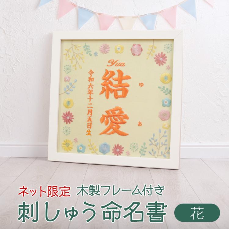 4位:【WEB限定品】「誕生用」刺しゅう命名書 フレーム付き 刺繍タペストリー 花